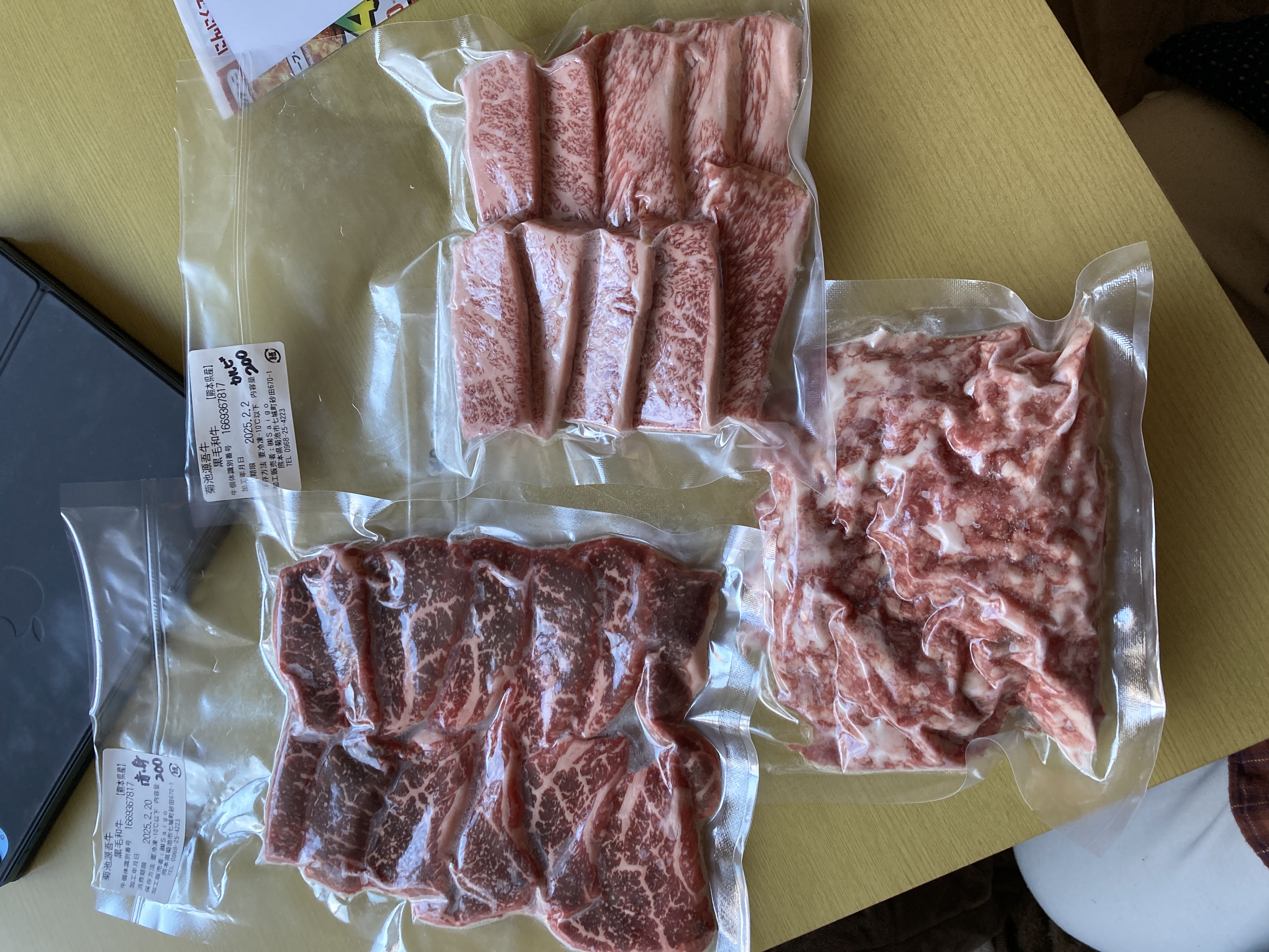 さてさて焼肉用赤身、カルビ、粗挽きミンチを購入。