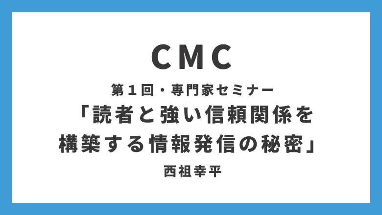 2022年6月CMC専門家セミナー・西祖幸平さんによる「読者と強い信頼関係を構築する情報発信の秘密」の動画です。