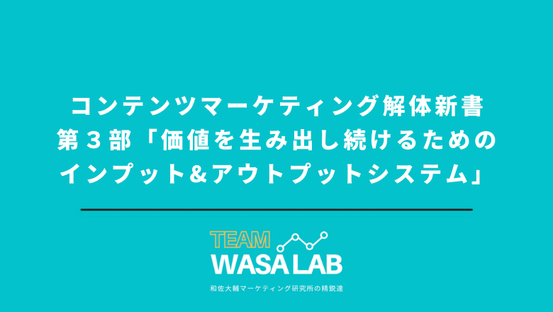 コンテンツマーケティング解体新書第3部「価値を生み出し続けるためのインプット&アウトプットシステム」の動画です。