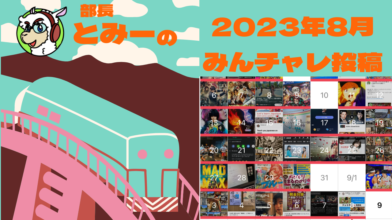 半月ごとにお届けしている、部長とみーのみんチャレ投稿。少しアップが遅れてしまいましたが、2023年8月の投稿も完了し、もう9月。。