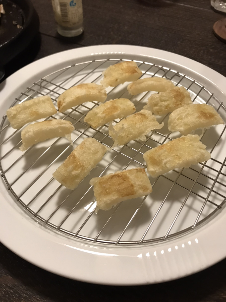 大根(分厚く剝いた皮の部分)、八方出汁 適量、薄力粉 30g、焼酎(甲類) 大さじ2、水 大さじ2、揚げ油 適量