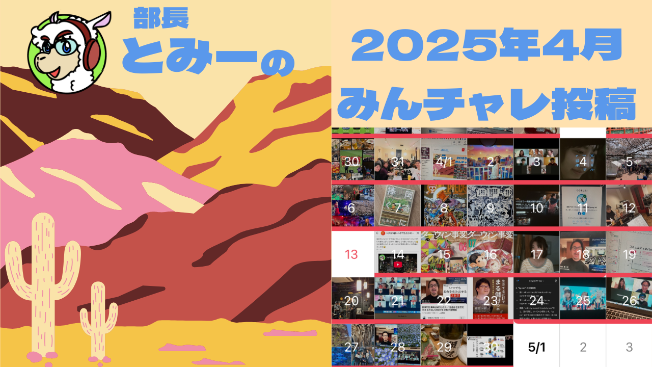 このコンテンツでは、部長のとみーが別の習慣化スマホアプリ「みんチャレ」( https://minchalle.com/)で毎日投稿している内容を、毎月まとめてENERGEIAにも投稿しています。