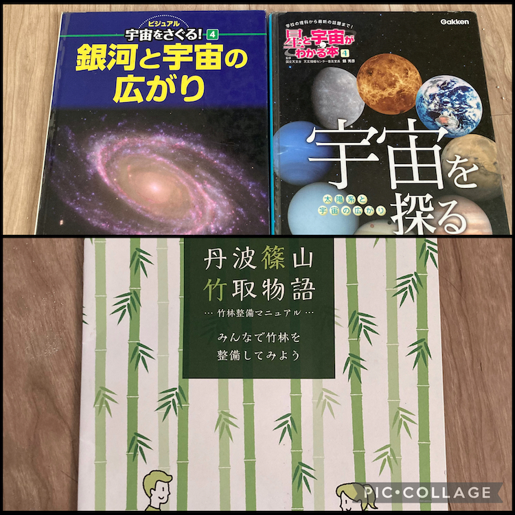 写真の上は、近所の図書館で借りた宇宙関係の本です😊自分は大学時代は文系で、まったく科学的な理論はわからないのですが、宇宙の広大さを考えると興奮します😅