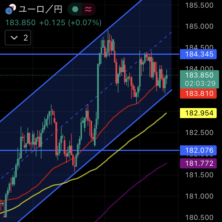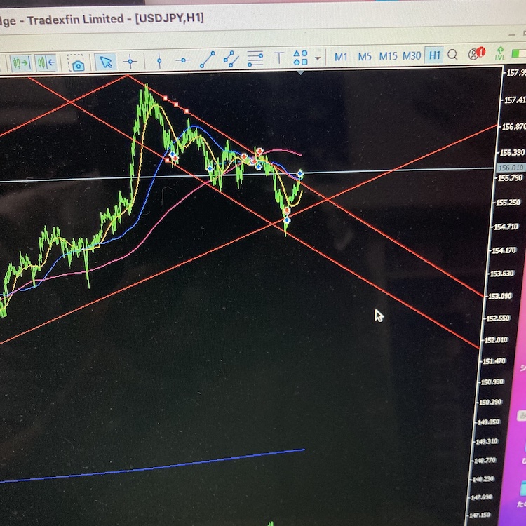 今日は為替(FX)の勉強をしていて、Trading Viewという人気のチャート分析アプリを使ってました。投稿画像はスマホアプリ版ですが、主にPC版の方でいろいろ試して、なんとかわかってきたところです。