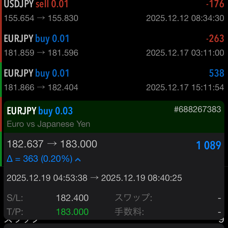 少額ながら、預けた資産の最大2%以内の損切で収まるようなルールでやっているので安心感があります。このような学びの機会を無料で提供してくれているグループに参加しており、いつも楽しく学びあっているので感謝です😊来年は大きな成果を出して堂々と報告できると思ってます👍もし興味のある方がいたらお声がけください😊