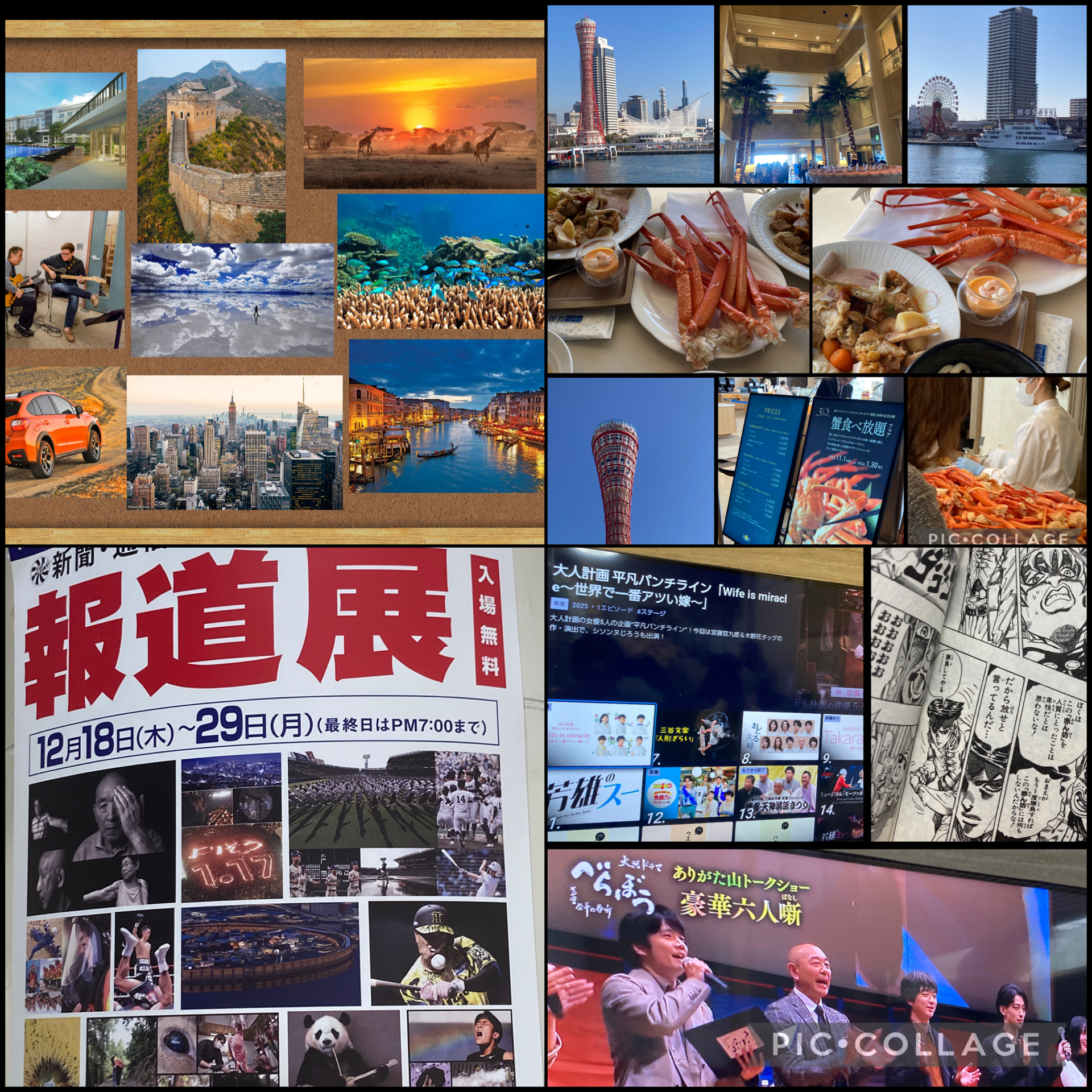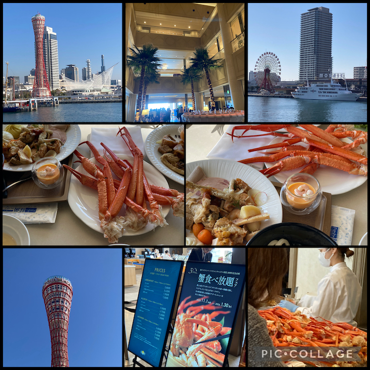 右上:神戸メリケンパークのホテルレストランで、年末恒例のカニを含むビュッフェを楽しんできました。どれも美味しくて最高の気分になれました😊