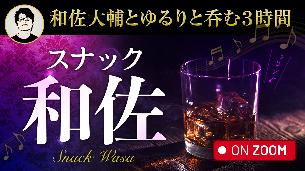 普段はメルマガやTwitter、Youtubeなどでビジネスや生き方の発信をしている和佐大輔ですが、今回はゆるりと参加者のみなさんとお酒を嗜みながらおしゃべりをするイベントです。